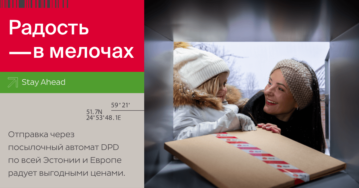 Отправка посылок с DPD — это быстро и удобно! Посылки можно отправлять в посылочные автоматы, а также на адреса по всей Эстонии и во все страны Европейского Союза.